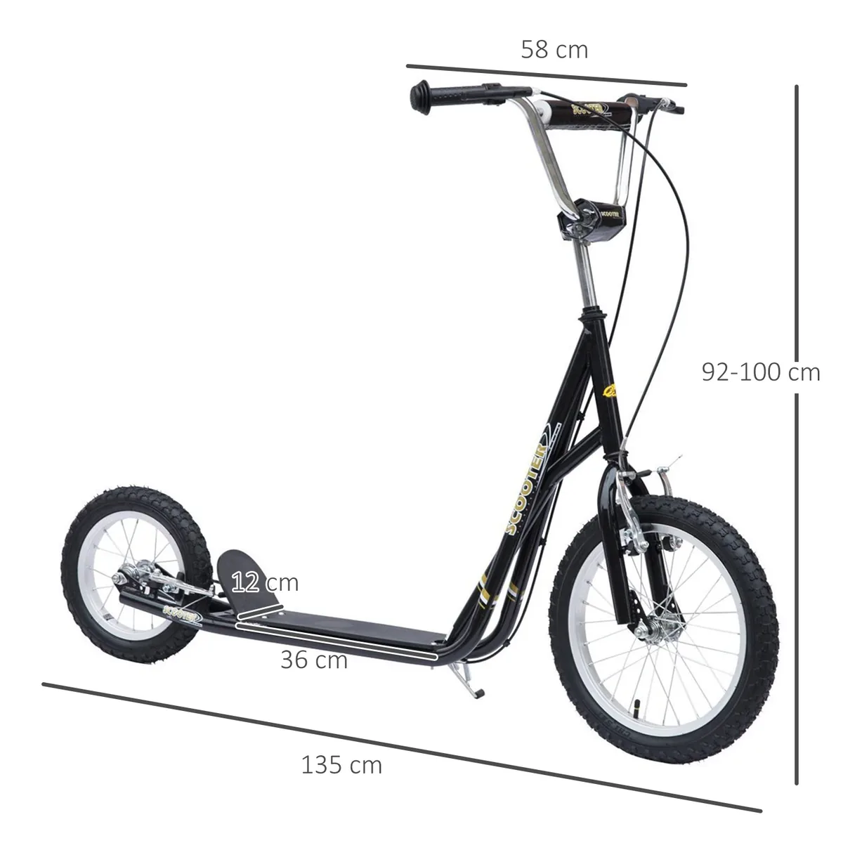Šis HOMCOM paspirtukas siūlo vairavimo pramogą visai šeimai. Šis paspirtukas tinka vaikams, paaugliams ir tėvams. Puikiai tinka trumpoms kelionėms į mokyklą ar darbą. Dėl 16 colių ratlankių ir 12 colių ratlankių su pneumatinėmis padangomis paspirtukas greitai slysta. V formos stabdys valdomas vairu ir leidžia saugiai sustoti. Dėl įmontuoto stovo paspirtuką galima lengvai pastatyti jo nepadedant.