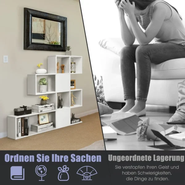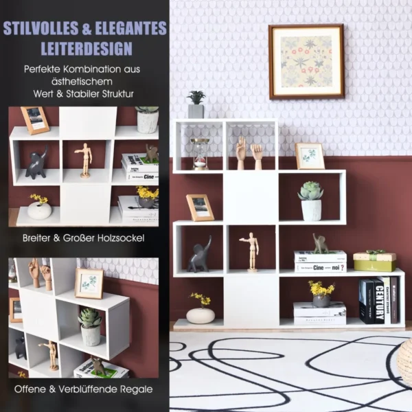 Pastatoma lentyna 120×19,5x109cm, baltos spalvos, yra praktiškas sprendimas papildomai saugojimo erdvei namuose ar biure. Penkių aukštų lentyna kopėčių formos konstrukcija tinka įvairioms erdvėms – nuo svetainės iki miegamojo ar darbo kambario.