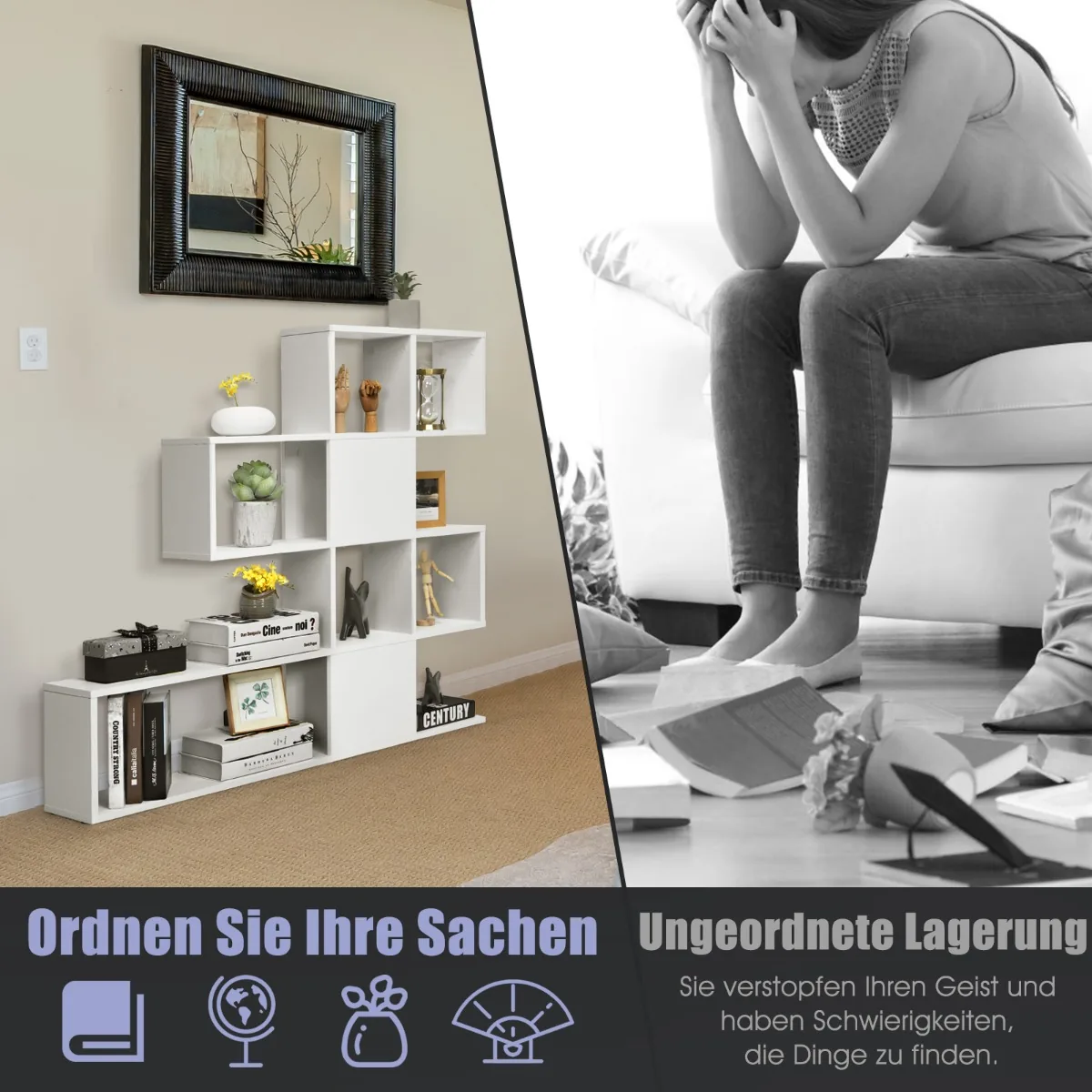 - 5 pakopų lentyna suteikia daug vietos daiktų saugojimui ir eksponavimui.