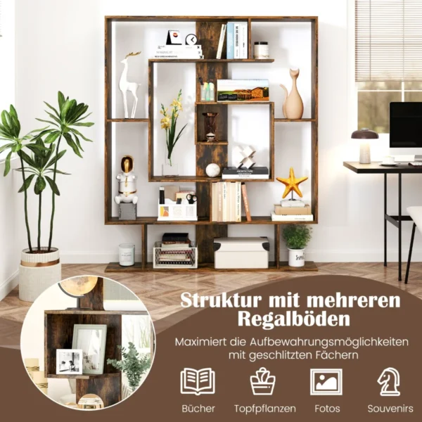 Pastatoma lentyna 125x22x150cm, rudos spalvos, yra praktiškas sprendimas jūsų knygoms, dekoracijoms ir daiktams laikyti. 7 pakopų lentynų struktūra suteikia daug vietos įvairiems daiktams, o universalus dizainas lengvai pritaikomas skirtingose patalpose.