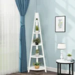 - Kampinė lentyna su penkiomis pakopomis, kurios palaipsniui siaurėja iš apačios į viršų.