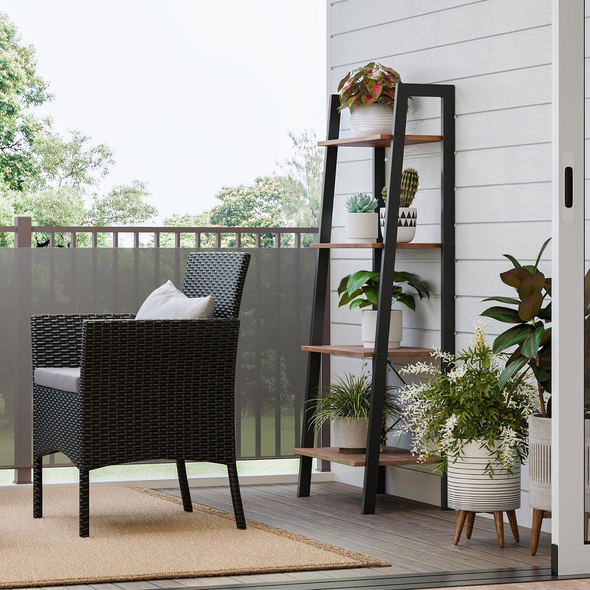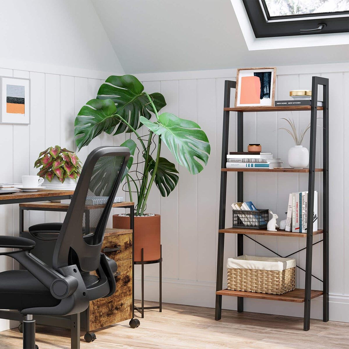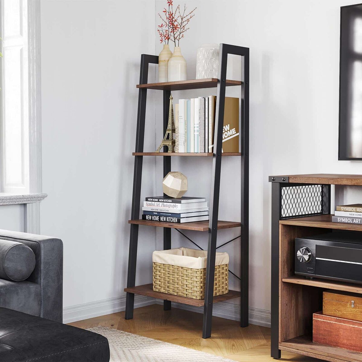 Ši pastatoma lentyna su 4 pakopomis yra puikus sprendimas jūsų namų ar biuro interjerui. Jos elegantiška lazdyno juoda spalva ir tvirta konstrukcija iš medienos drožlių plokštės bei plieno suteikia ne tik estetinį, bet ir funkcionalų pranašumą.