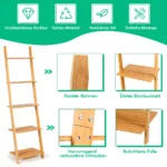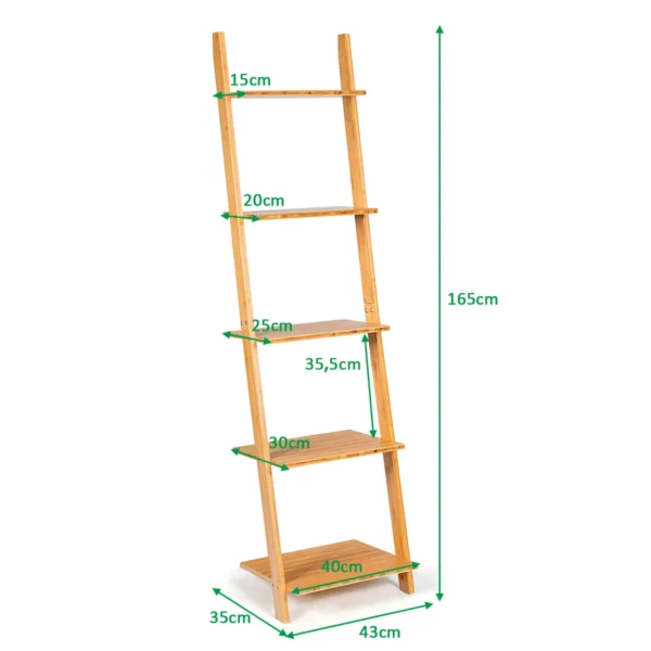 Pastatoma lentyna 43x35x165 cm, šviesiai rudos spalvos, pagaminta iš natūralaus bambuko, yra praktiškas sprendimas knygoms ir daiktams tvarkingai laikyti. Ši kopėčių lentyna puikiai tinka tiek miegamajame, tiek svetainėje ar biure, užimant minimaliai vietos ir užtikrinant didelį saugojimo plotą.