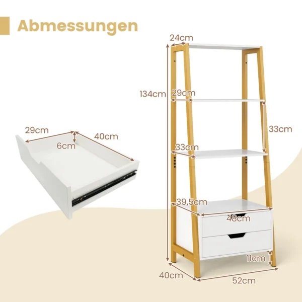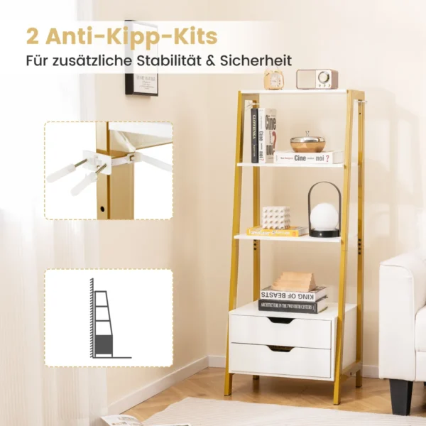 Pastatoma lentyna 52x40x134cm baltos ir auksinės spalvos puikiai tinka knygų, nuotraukų bei kitų daiktų organizavimui ir tvarkingam išdėstymui. Dėl tvirto metalinio rėmo ir stabilios konstrukcijos ši lentyna užtikrina saugumą ir ilgaamžiškumą įvairiose namų ar biuro erdvėse.