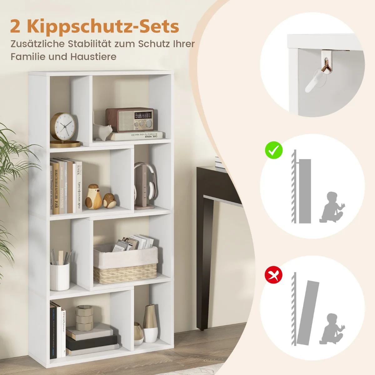 - 8 pakopų atvira knygų lentyna suteikia daug vietos knygoms, dekoratyviniams daiktams, augalams ar kolekcijoms.