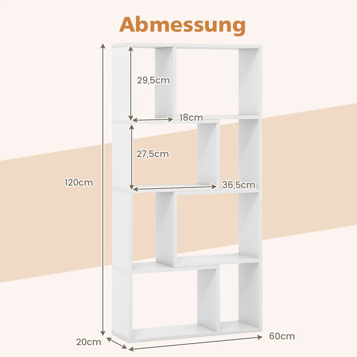 Pastatoma lentyna 60x20x120cm, baltos spalvos, yra praktiškas sprendimas įvairių daiktų ir knygų laikymui. Ši medinė lentyna puikiai tinka kambariams, kur reikia papildomos vietos saugojimui ir interjero organizavimui.