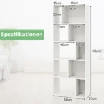Pastatoma lentyna 60x25x160cm., baltos spalvos, skirta patogiam ir funkcionaliam daiktų laikymui. Penkių pakopų dizainas ir 10 įvairaus dydžio daiktadėžių padeda tvarkingai suskirstyti jūsų knygas, dekoracijas ar kitus namų apyvokos daiktus. Lentyna tinka naudoti tiek svetainėje, tiek darbo kabinete ar miegamajame.