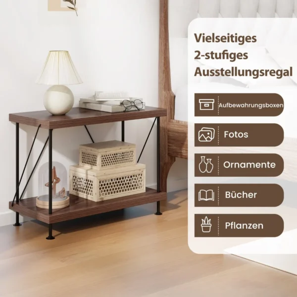 Pastatoma lentyna 60×29,5×45 cm rudos ir juodos spalvos yra praktiškas sprendimas knygų, dekoracijų ar kitų daiktų saugojimui. Ši lentyna pasižymi kompaktišku dydžiu ir derina metalinį rėmą su medžio imitacijos paviršiumi, todėl tinka įvairioms erdvėms.