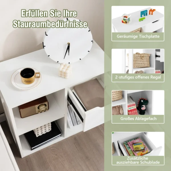 - Lentyna susideda iš trijų atvirų lentynų ir vieno stalčiaus, skirta įvairių daiktų tvarkingam saugojimui.