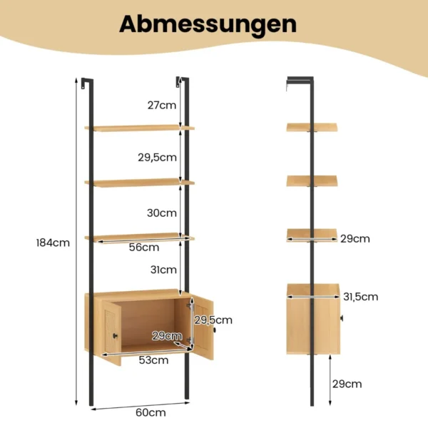 Pastatoma lentyna 60×31,5×184 cm yra praktiškas sprendimas knygų, dekoracijų ar kitų daiktų laikymui namuose ar biure. Juodos ir šviesiai rudos spalvų derinys dera su įvairiu interjeru, o konstrukcija užtikrina stabilumą ir saugumą.