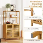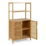 Pastatoma lentyna 60x33x116 cm, šviesiai rudos spalvos, pagaminta iš natūralaus bambuko, puikiai tinka knygų, dekoracijų ir kitų daiktų saugojimui. Ši lentyna su atviromis lentynomis bei uždara spintele suteikia praktišką laikymo sprendimą įvairioms namų erdvėms.