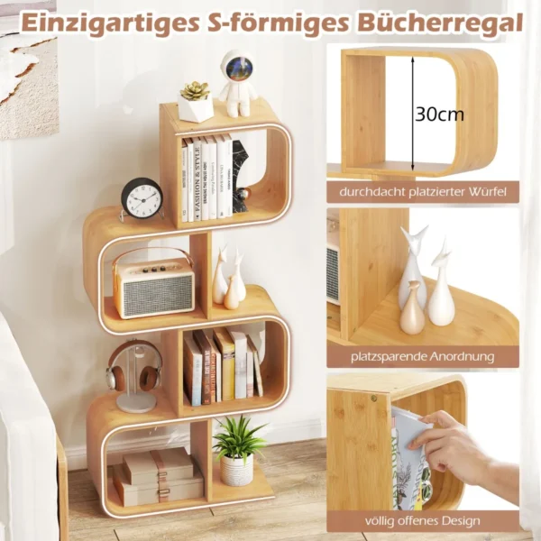 - Keturios lentynos su atvira konstrukcija leidžia patogiai išdėstyti knygas, augalus, dėžutes ar kitus aksesuarus.