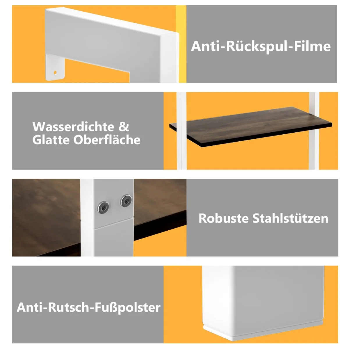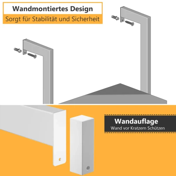 - Tvirtinama prie sienos 90° kampu, užtikrinant stabilumą ir saugumą.
