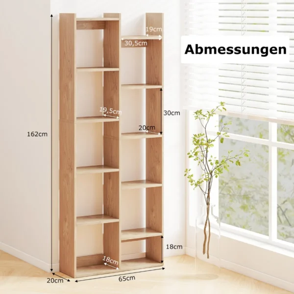 • Lentyna turi 10 atvirų skyrių ir 2 viršutines lentynas, kurios suteikia daug vietos knygoms, dekoracijoms ir kitiems daiktams.