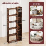 Pastatoma lentyna 69x22x163cm tamsiai rudos spalvos yra funkcionali ir universali knygų spinta, skirta tvarkingam knygų, suvenyrų bei kitų daiktų laikymui. Dėl savo kompaktiškų matmenų ir tvirto konstrukcijos sprendimo ji puikiai tinka įvairioms namų bei biuro erdvėms.