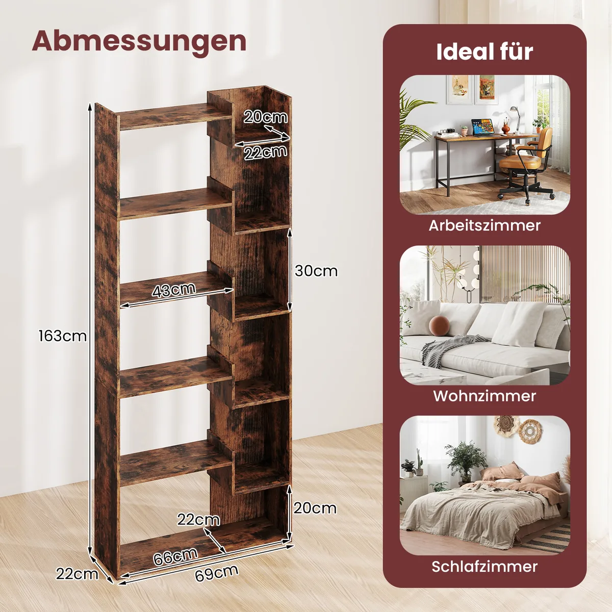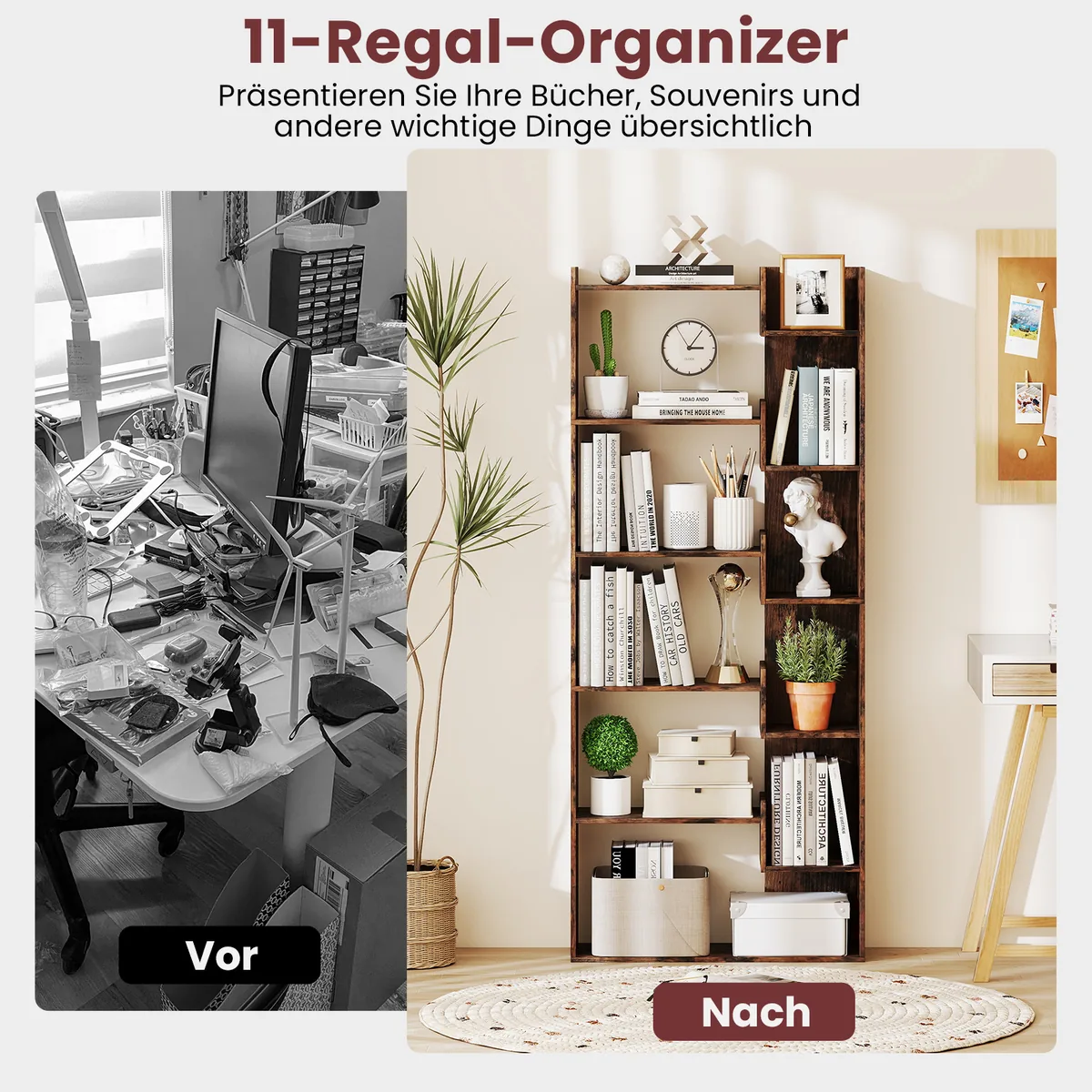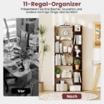 - Lentyna turi 11 lentynų, suteikiančių pakankamai vietos knygoms, dekoracijoms ir būtiniems daiktams laikyti.