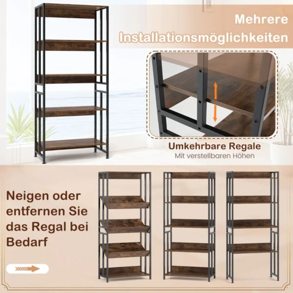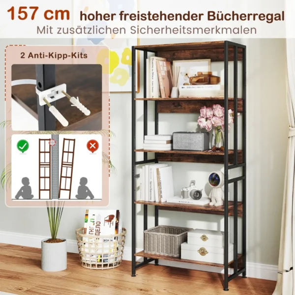 Pastatoma lentyna 70x35x157cm, rudos ir juodos spalvos, puikiai tinka knygų, dekoracijų ir kitų daiktų saugojimui. Penkių pakopų lentyna su reguliuojamomis ir nuimamomis lentynomis leidžia pritaikyti ją pagal jūsų poreikius. Metalinis rėmas užtikrina tvirtumą ir stabilumą ilgalaikiam naudojimui.