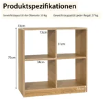 Pastatoma lentyna 73x33x75cm šviesiai rudos spalvos – praktinis sprendimas daiktų tvarkymui ir knygų laikymui įvairiose patalpose. Keturi kubeliai suteikia pakankamai vietos knygoms, žurnalams, kompaktiniams diskams ar dekoratyvinėms dėžėms. Lentyna tinka tiek svetainėms, tiek darbo kambariams ar koridoriams.
