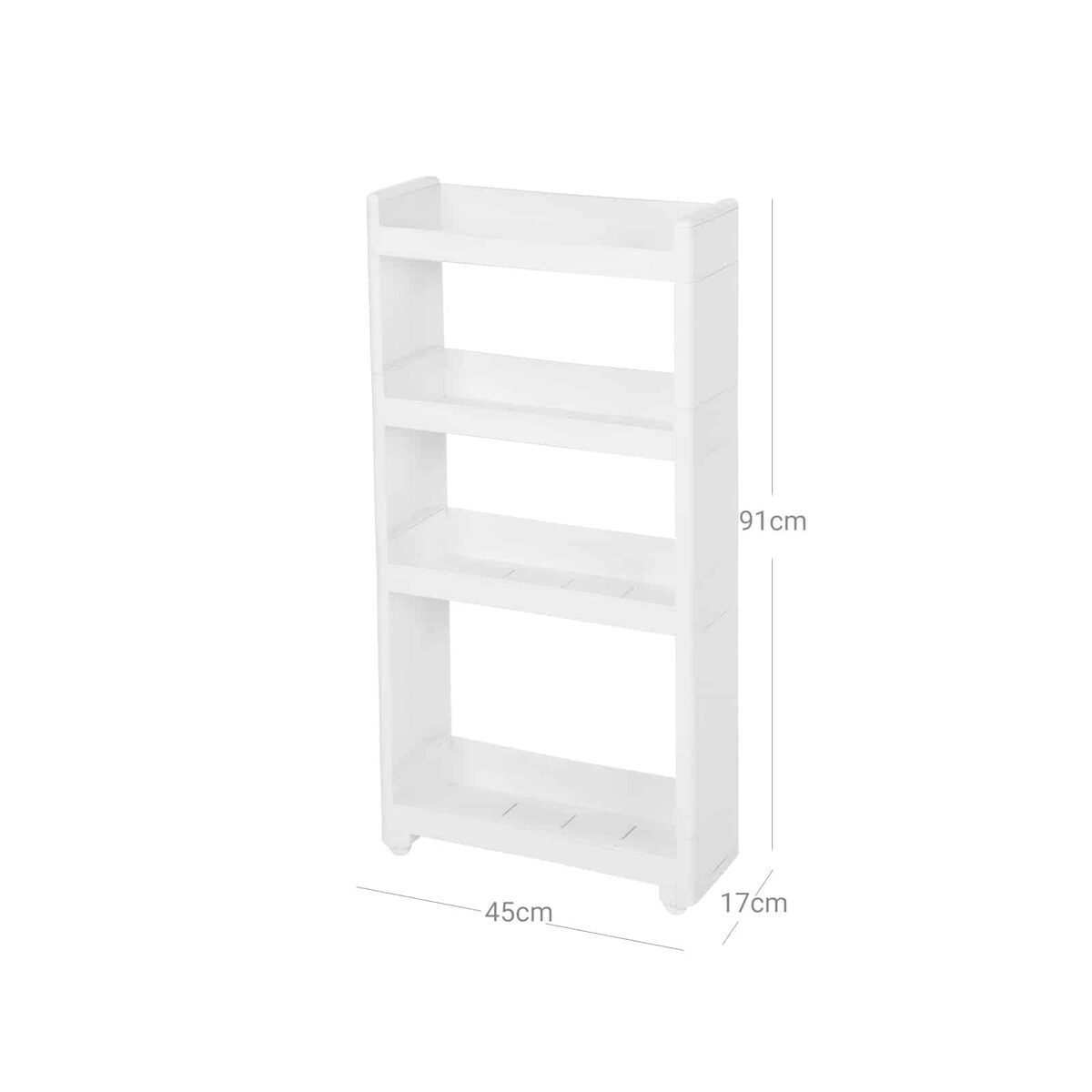 Ar jus visada erzina, kad jūsų namuose trūksta vietos? Ši plona pastatoma lentyna, baltos spalvos, kurios matmenys yra 45 x 17 x 91 cm, puikiai telpa į bet kokį tarpą ir sukuria saugyklą, kurios net nežinojote.