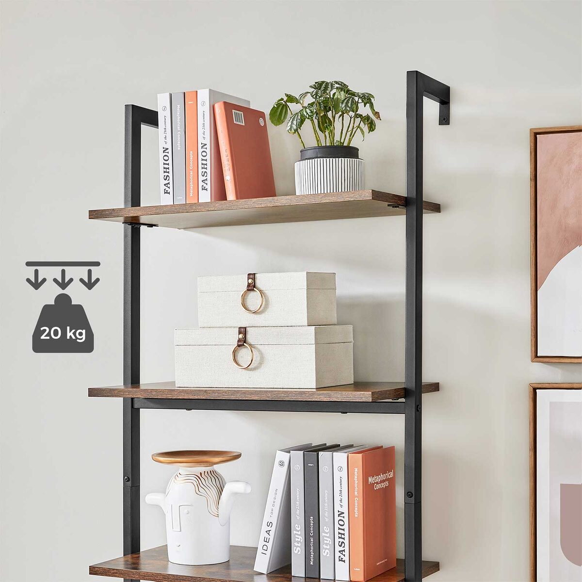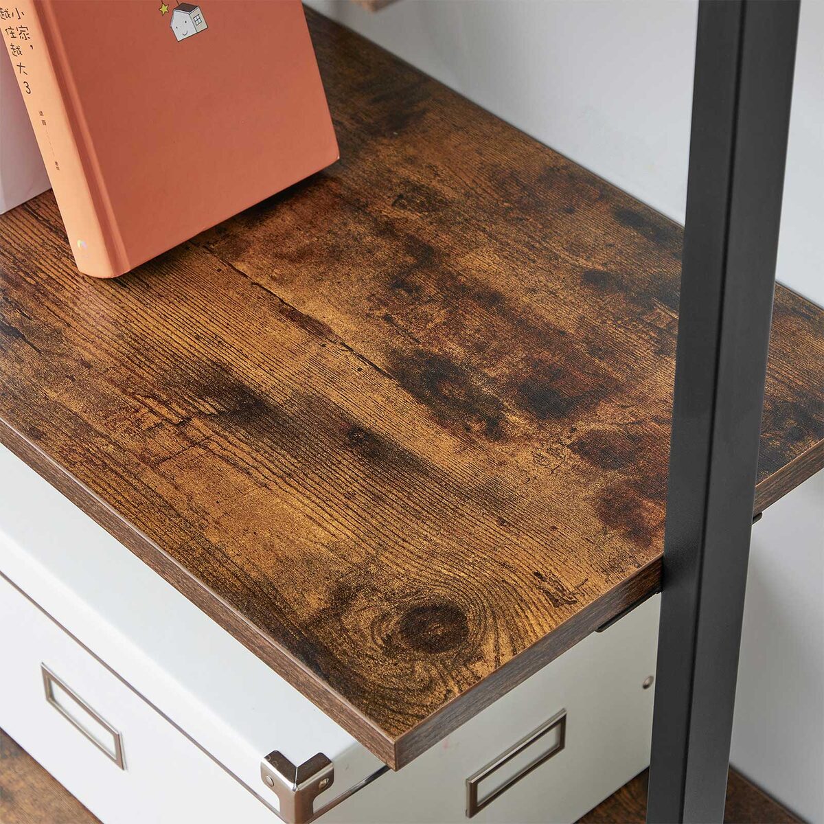 Ši pastatoma lentyna vintažinės rudos ir juodos spalvos yra puikus pasirinkimas jūsų namų ar biuro interjerui. Pagaminta iš aukštos kokybės medžio drožlių plokštė (MDP) ir plieno, ji ne tik atrodo stilingai, bet ir yra labai patvari.