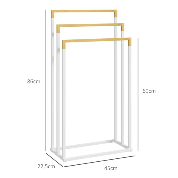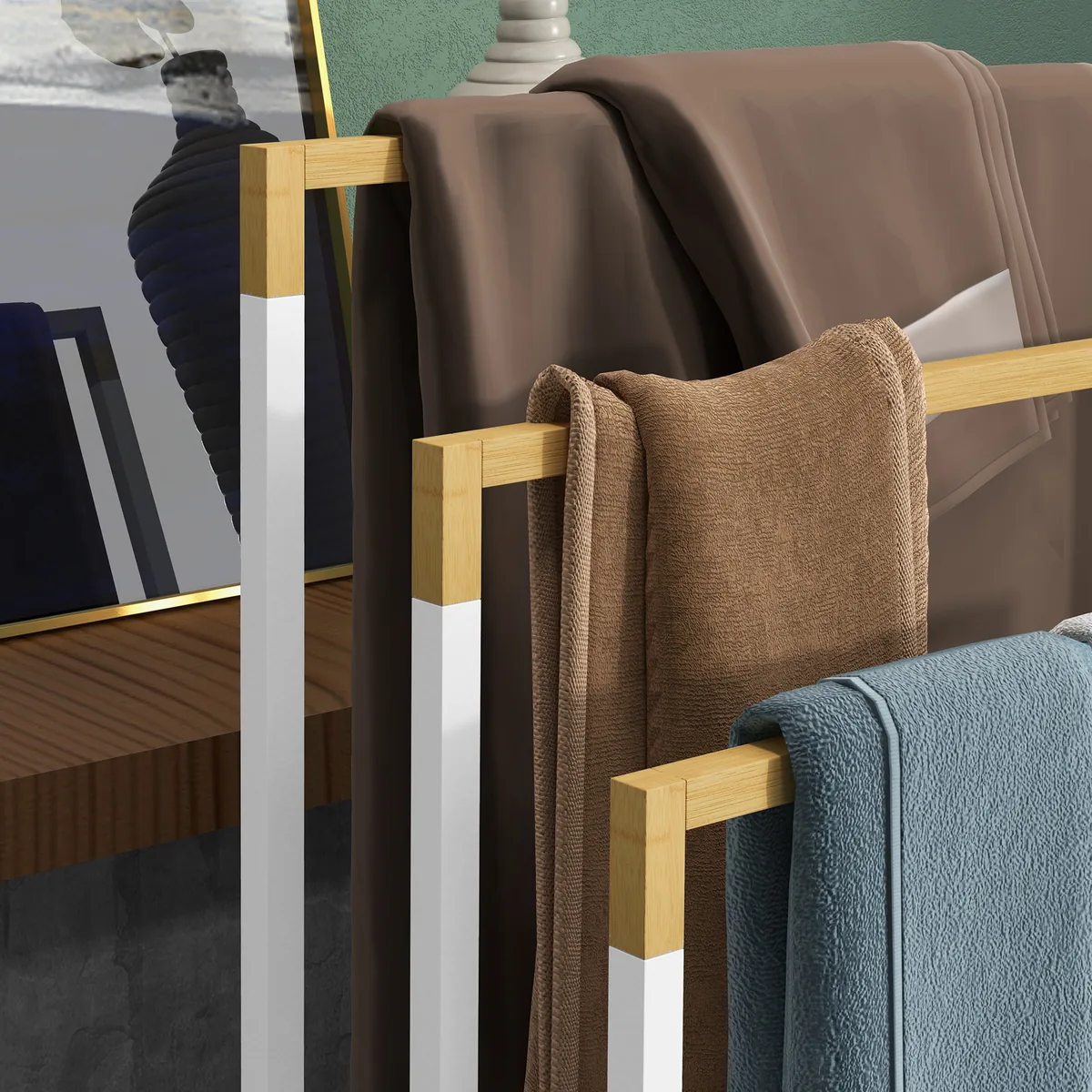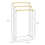 Pakabinkite rankšluosčius ant šios praktiškos 3 bėgių rankšluosčių kabyklos iš kleankin. Rankšluosčių kabykla yra pagaminta iš tvirto bambuko ir metalo, kad atrodytų natūraliai ir būtų tinkama naudoti kasdien, o rankšluosčių kabyklos drabužių kabyklos pagamintos iš tvirto, lengvai valomo bambuko. Laisvai pastatomas dizainas leidžia jį pastatyti šalia dušo kabinos, vonios ar bet kur.