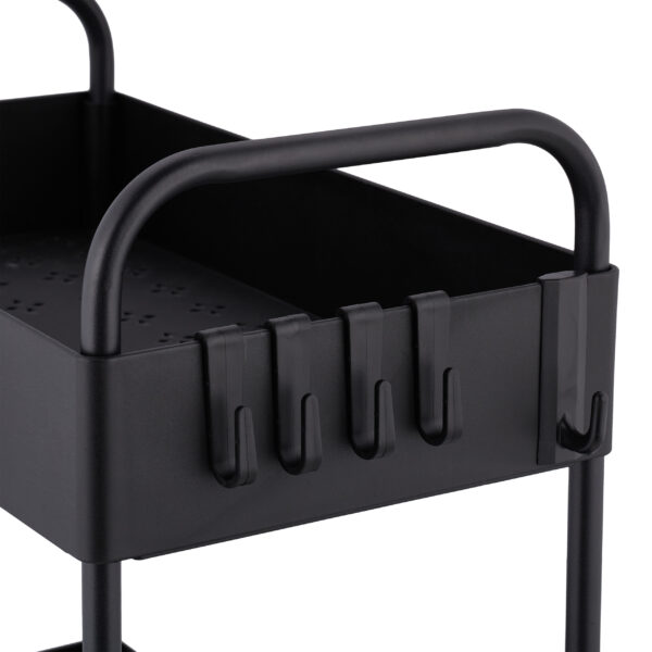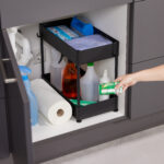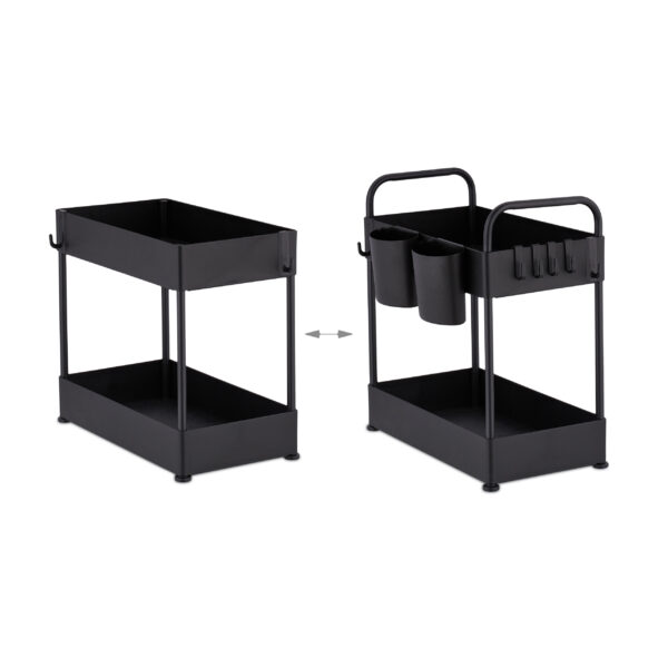 - Dviejų lygių dizainas: Suteikia daug vietos įvairiems daiktams, tokiems kaip valymo priemonės ar vonios reikmenys.