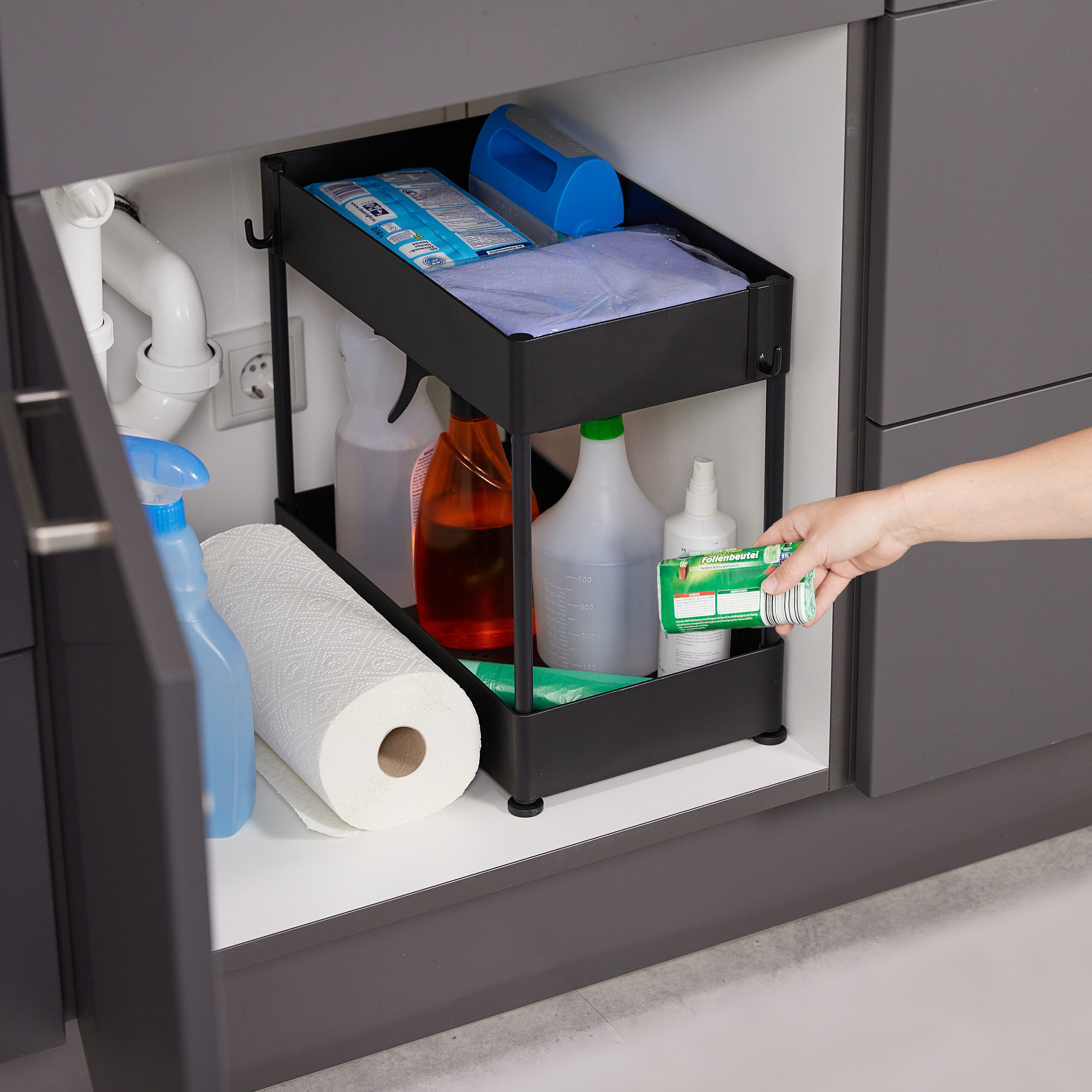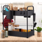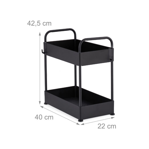 Pristatome universalų ir stilingą sprendimą jūsų virtuvės ar vonios kambario organizavimui – pastatomą virtuvės lentyną, kurios matmenys yra 42,5x22x40 cm. Ši juodos spalvos lentyna ne tik suteiks jūsų erdvei modernumo, bet ir padės efektyviai išnaudoti turimą vietą.
