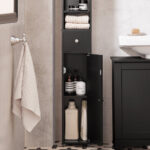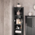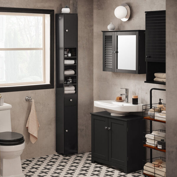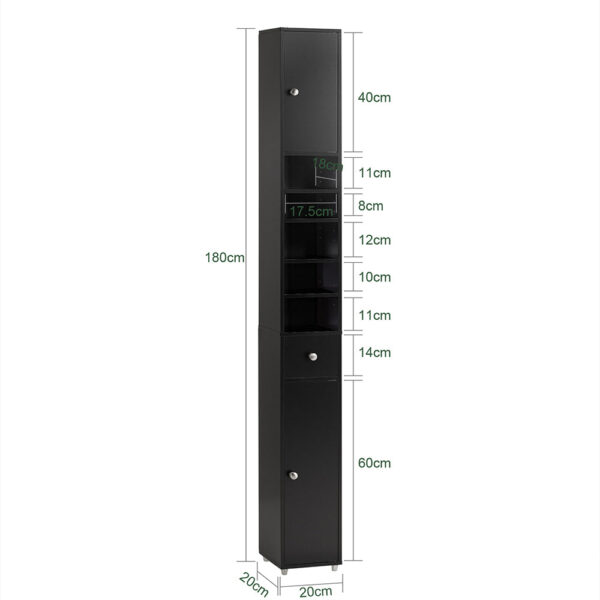 Ši pastatoma vonios spintelė 20x20x180 cm, juodos/sidabrinės spalvos, suteiks jūsų vonios kambariui stilingą išvaizdą ir modernią atmosferą. Jos subtilus ir elegantiškas dizainas puikiai tinka bet kokiam vonios kambariui.