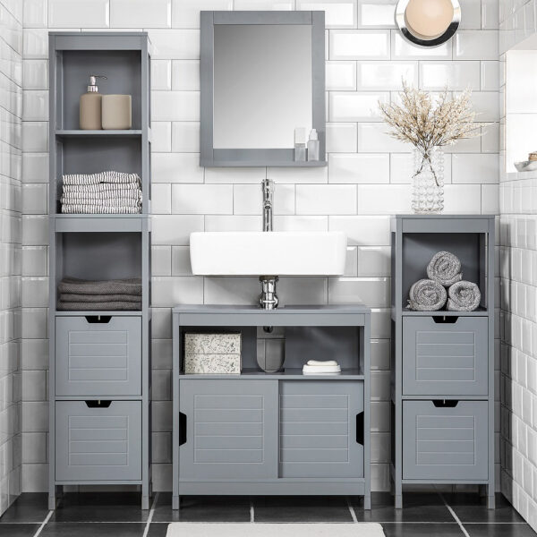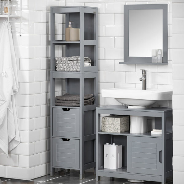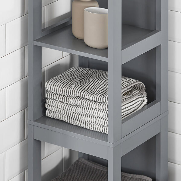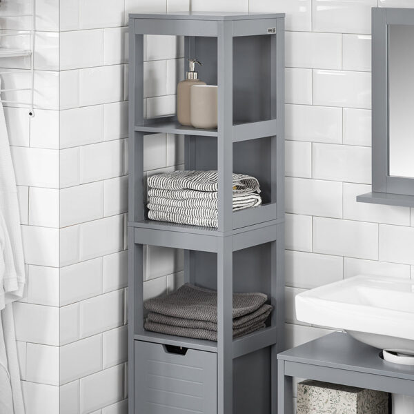 Ši pastatoma vonios spintelė 30x30x144 cm, pilkos spalvos, yra puikus sprendimas papildomai daiktų laikymo vietai jūsų namuose. Dėl savo kompaktiško dydžio ji lengvai telpa net ir mažiausiose erdvėse, todėl idealiai tinka naudoti virtuvėje, vonios kambaryje ar bet kurioje kitoje vietoje, kur reikia papildomos vietos daiktams laikyti.