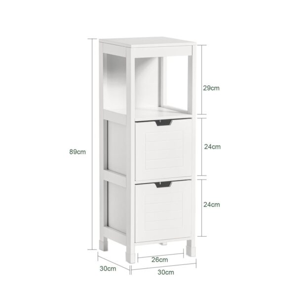 Ši pastatoma vonios spintelė 30x30x89 cm, baltos spalvos, yra puikus sprendimas jūsų namų interjerui. Dėl savo kompaktiško dydžio ji lengvai pritaikoma įvairiose erdvėse ir gali būti naudojama skirtingiems poreikiams patenkinti. Spintelė suteikia papildomą vietą daiktų laikymui, paviršių daiktams padėti ir darbo zoną. Ji idealiai tinka naudoti virtuvėje, vonios kambaryje ar bet kurioje kitoje vietoje, kur reikia papildomos laikymo vietos.