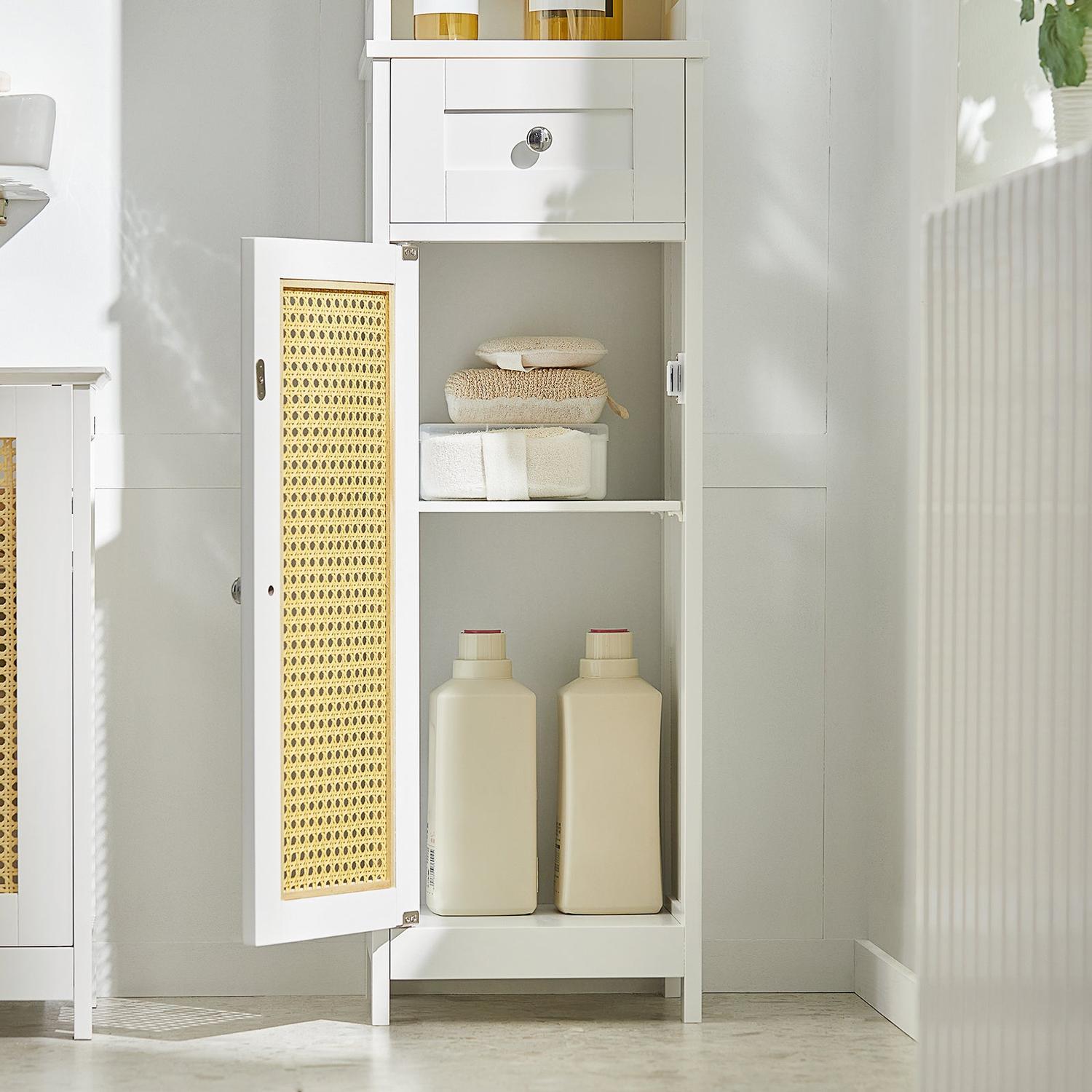Pastatoma vonios spintelė 32x30x170 cm, baltos/geltonos spalvos, yra puikus sprendimas efektyviam erdvės išnaudojimui jūsų namuose. Ši spintelė suteikia universalų laikymo sprendimą vonios kambariui, miegamajam ar bet kuriai kitai namų erdvei.