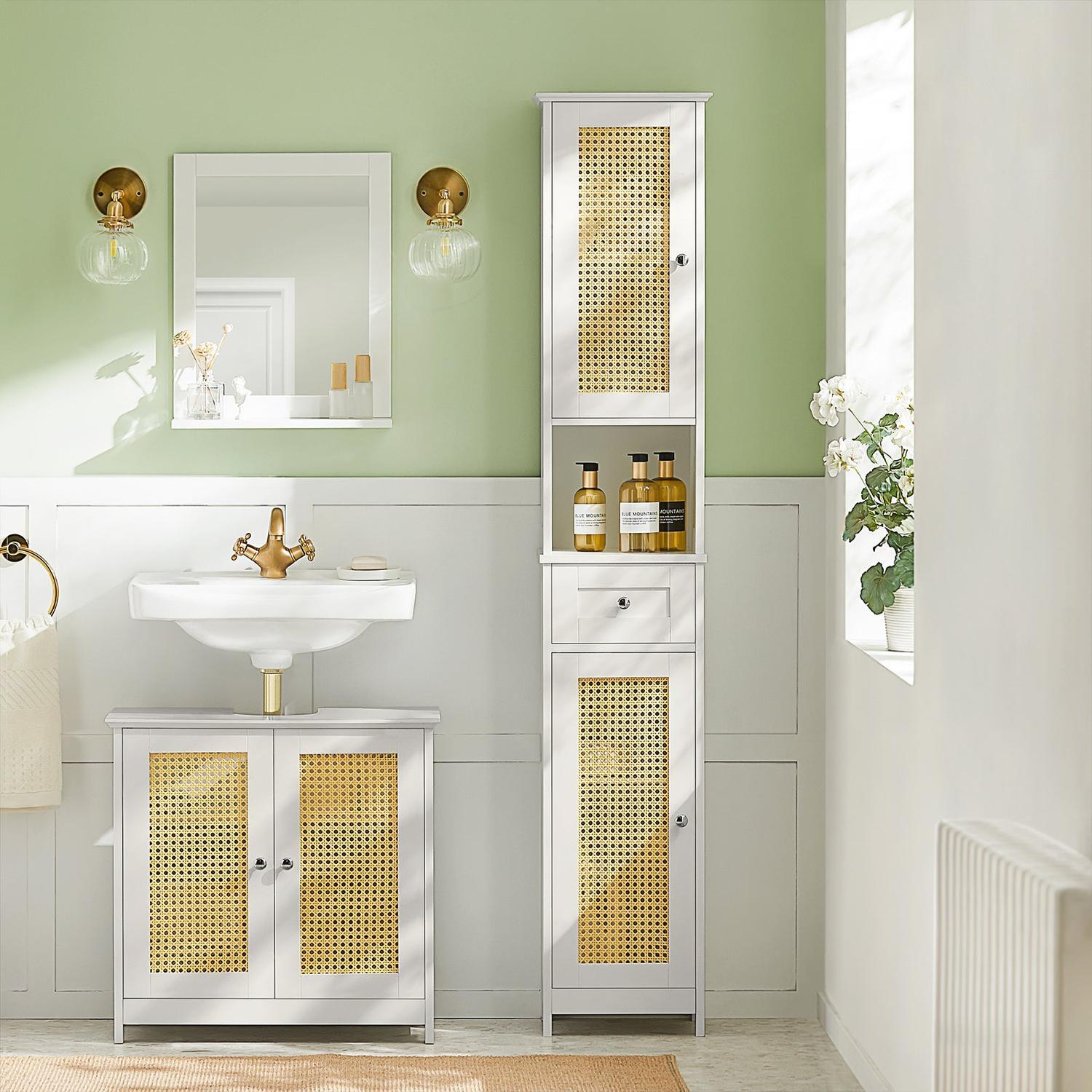 Pastatoma vonios spintelė 32x30x170cm., baltos/geltonos spalvos BZR70-W
