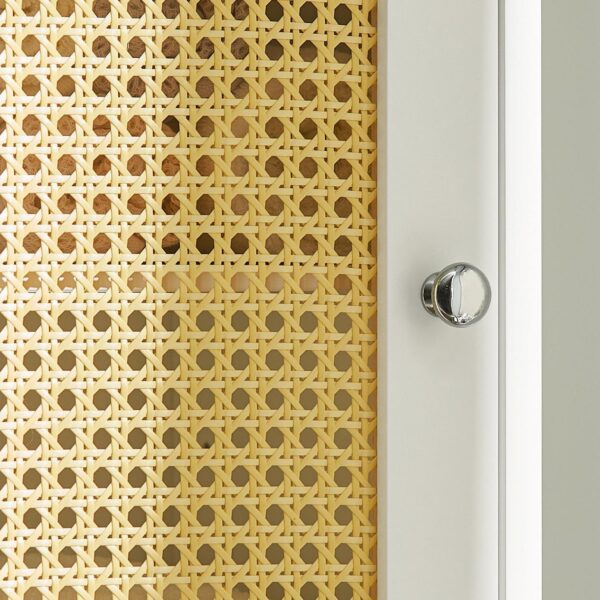 Spintelė turi vieną atvirą skyrių ir du uždarus skyrius su durimis, kurie suteikia pakankamai vietos jūsų daiktams tvarkingai laikyti. Reguliuojama lentyna leidžia pritaikyti erdvę pagal jūsų poreikius, todėl galite patogiai laikyti rankšluosčius, šampūną, aromaterapiją ir kitus dekoratyvinius daiktus.