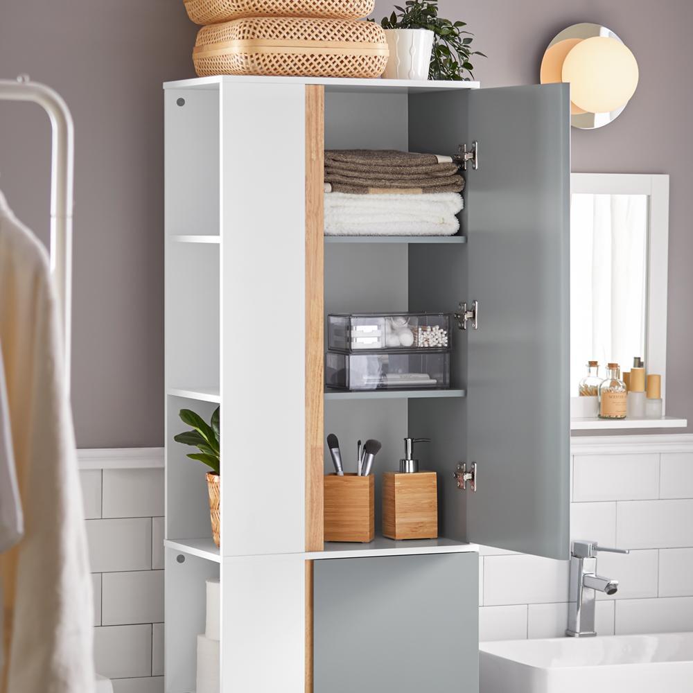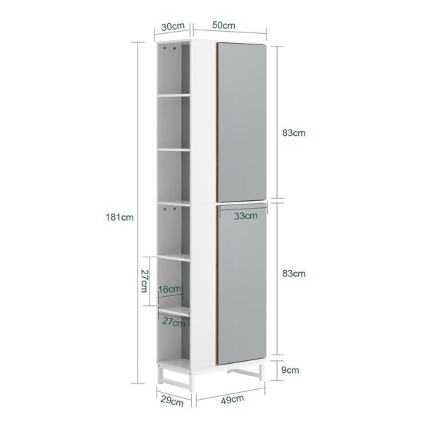 Ši pastatoma vonios spintelė 50x30x181 cm yra puikus pasirinkimas jūsų vonios kambariui. Skandinaviškas dizainas su švariomis ir paprastomis linijomis leidžia lengvai derinti spintelę su įvairių stilių baldais.