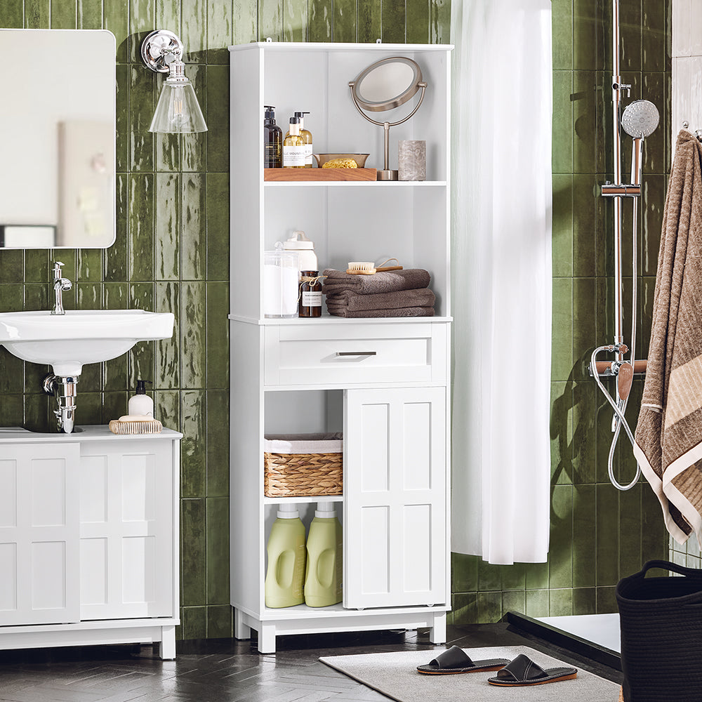 Ši vonios spintelė turi dviejų lygių saugojimo skyrių ir dviejų lygių spintelę. Atviras saugojimo skyrius ir erdvė už durų padeda palaikyti tvarką jūsų vonios kambaryje ar virtuvėje.