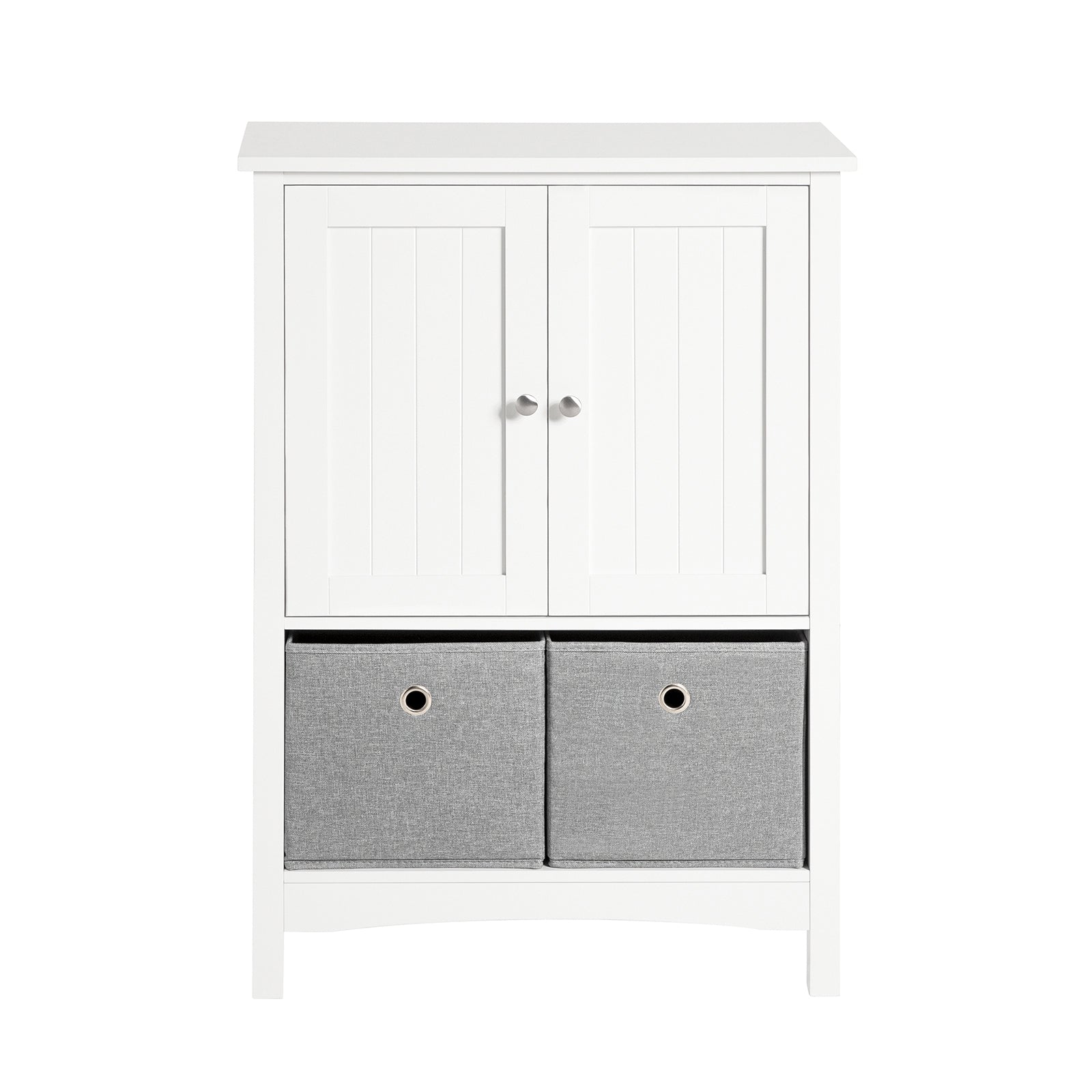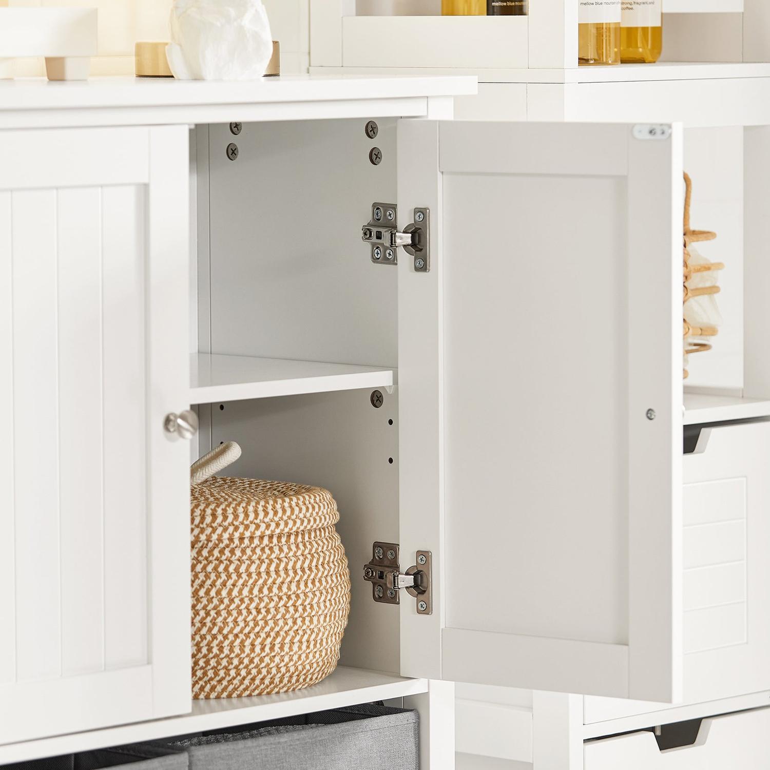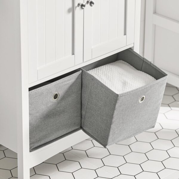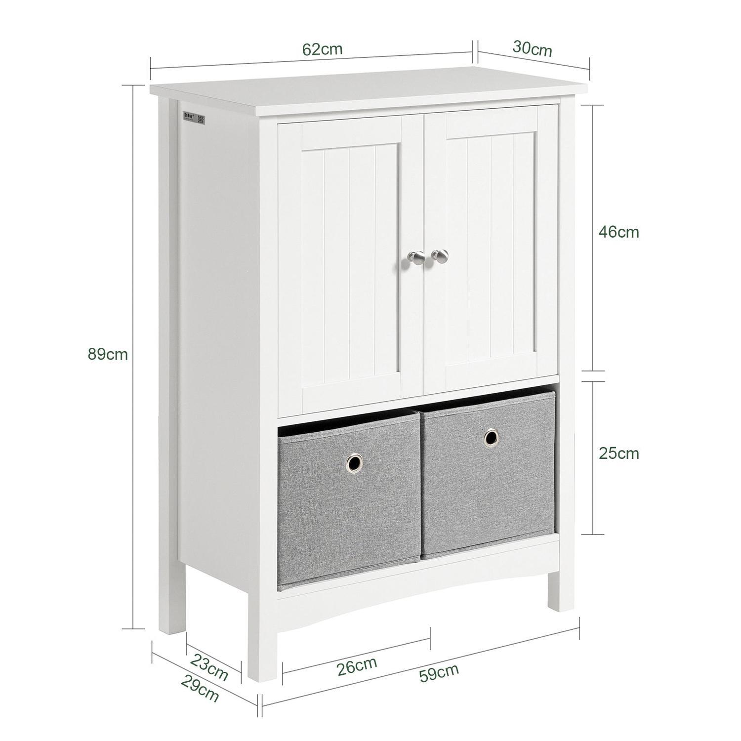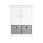 Spintelė turi 2 krepšius ir 2 durelėmis uždaromus skyrius, suteikiančius daug vietos jūsų daiktams laikyti ir tvarkyti. Tai puikus sprendimas, norint maksimaliai išnaudoti ribotą erdvę ir suteikti universalų laikymo sprendimą ne tik vonios kambariui, bet ir miegamajam ar kitoms namų erdvėms.