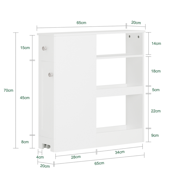 Ši pastatoma vonios spintelė 65x20x70 cm, baltos/sidabrinės spalvos, yra puikus sprendimas jūsų vonios kambariui. Dėl savo siauro dizaino ji puikiai tinka tarp tualeto ir vonios, suteikdama papildomos vietos daiktams laikyti.