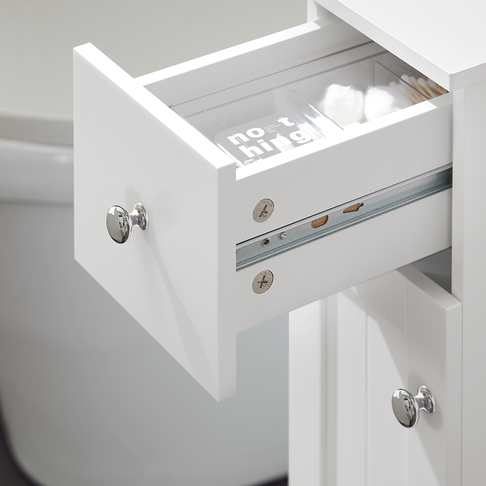 Spintelės balta spalva ir paprastas dizainas dera su bet kokiu interjeru, todėl ji puikiai papildo jūsų vonios kambario dekorą. Dėl netoksiško ir bekvapio dažymo, ši spintelė yra saugi naudoti vonios kambaryje ir lengvai valoma drėgna šluoste.