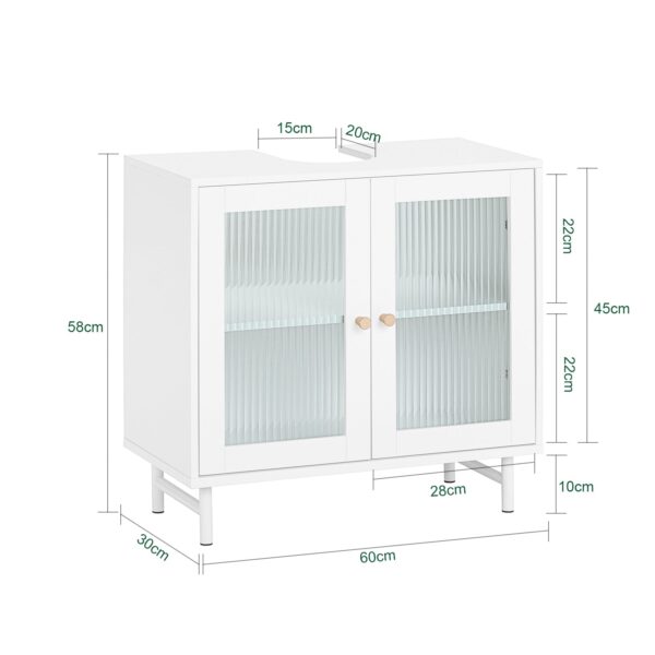 Pastatoma vonios spintelė po kriaukle 60x30x58 cm, baltos/auksinės spalvos, yra puikus sprendimas jūsų vonios kambario organizavimui. Ši spintelė ne tik suteikia vietos įvairiems reikmenims, bet ir sukuria jaukią atmosferą jūsų vonios kambaryje.