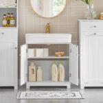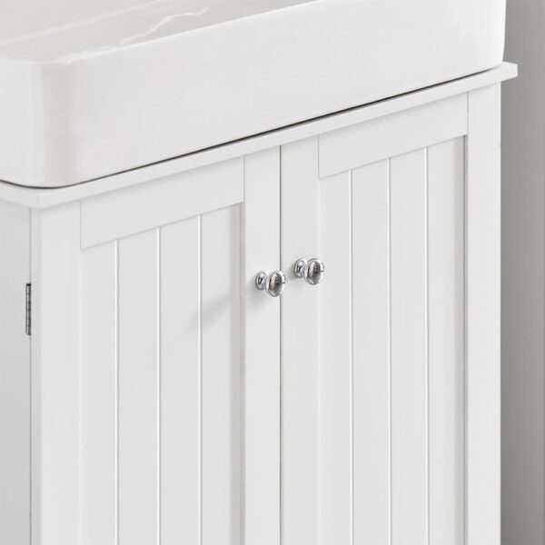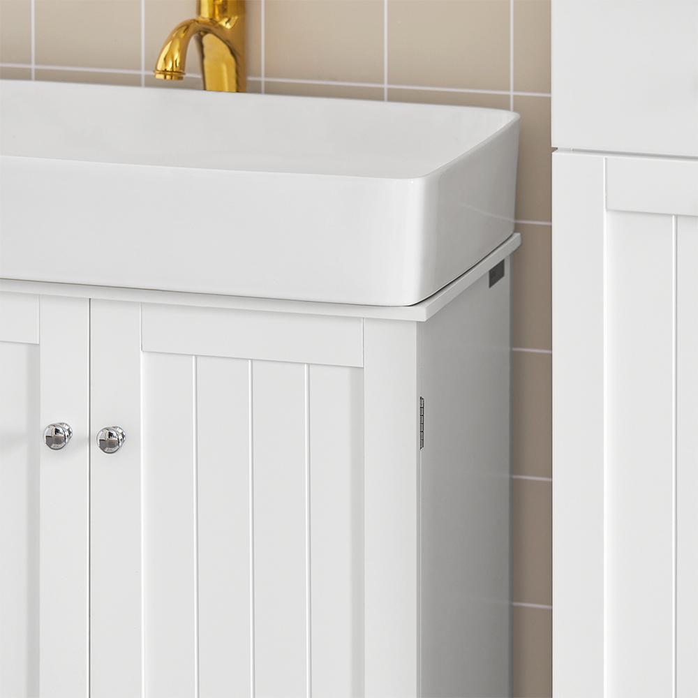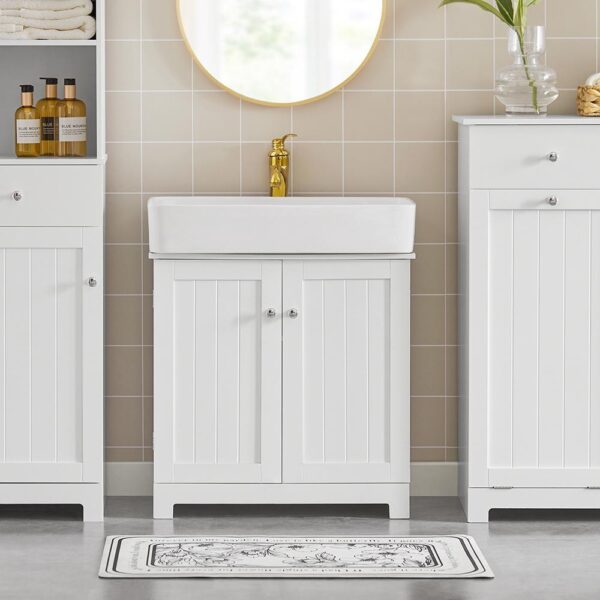 Pastatoma vonios spintelė po kriaukle 60x30x60 cm, baltos/sidabrinės spalvos, yra puikus sprendimas jūsų vonios kambario organizavimui. Ši skandinaviško stiliaus spintelė ne tik suteikia vietos įvairiems reikmenims, bet ir sukuria jaukią atmosferą jūsų vonios kambaryje.