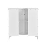 Vonios spintelė pagaminta iš aukštos kokybės MDF plokštės, padengtos lygia dvipuse dažų danga, užtikrinančia stabilumą, ilgaamžiškumą ir saugumą. Už dviejų durų slepiasi didelė talpa, kurioje patogiai laikysite visus reikalingus vonios reikmenis.