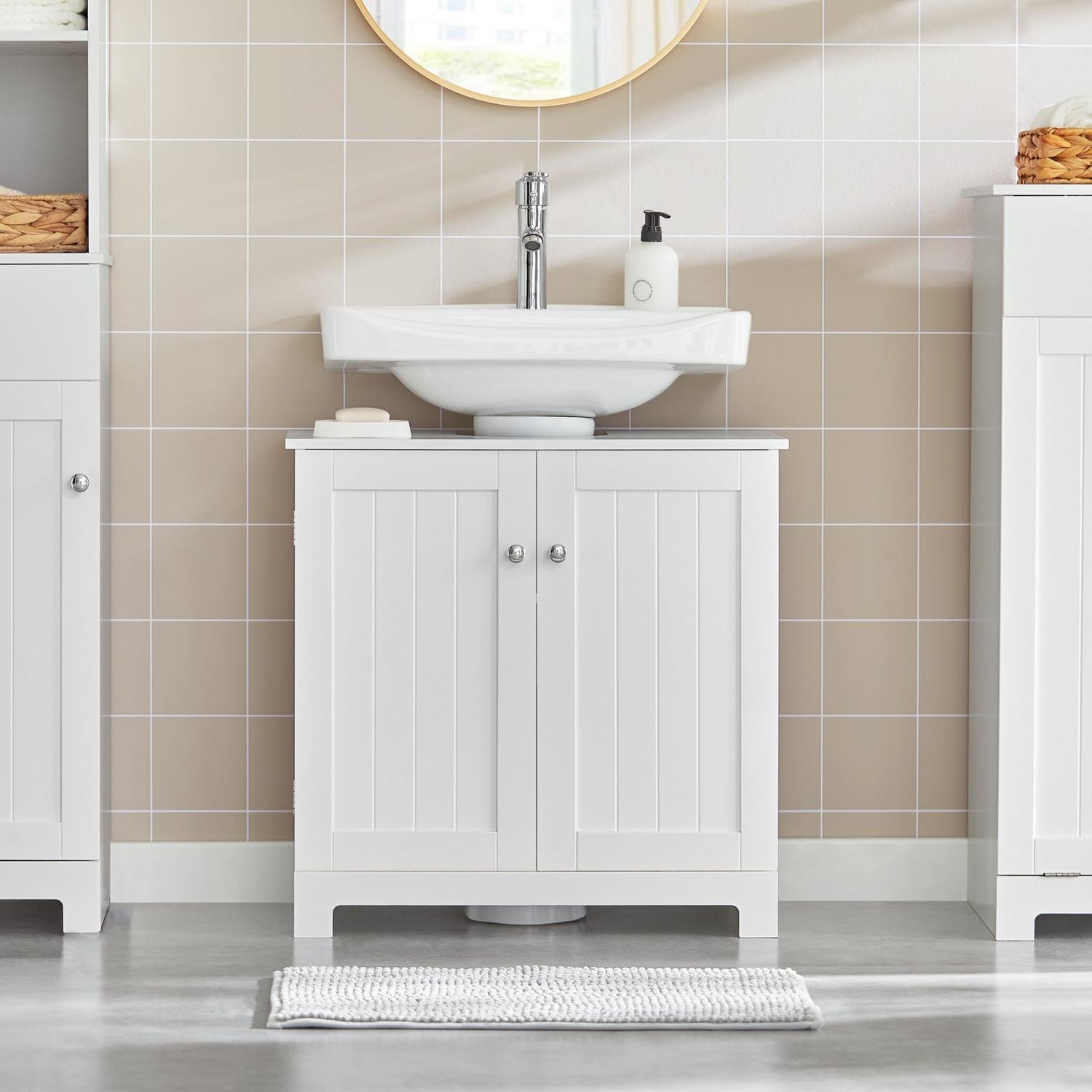 Pastatoma vonios spintelė po kriaukle 60x30x60 cm, baltos/sidabrinės spalvos, yra puikus pasirinkimas jūsų vonios kambariui. Ši spintelė pasižymi švariomis linijomis ir tekstūruotomis spalvomis, kurios puikiai dera su beveik bet kokia spalvų schema ar dekoro stiliumi.