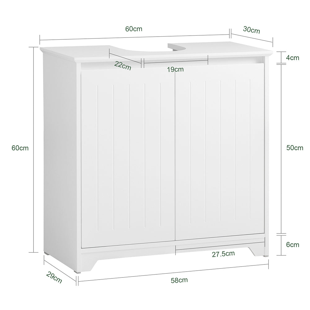 Ši pastatoma vonios spintelė po kriaukle 60x30x60 cm, baltos spalvos, suteiks jūsų vonios kambariui modernų ir stilingą įvaizdį. Jos subtilus ir elegantiškas dizainas puikiai tiks bet kokiam vonios kambariui.