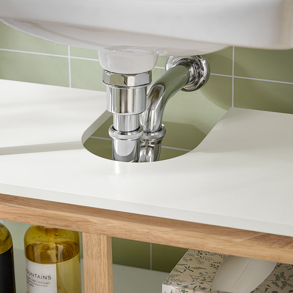 Be to, ši spintelė puikiai paslepia neestetiškas kriauklės drenažo sistemas, suteikdama jūsų vonios kambariui tvarkingą išvaizdą.