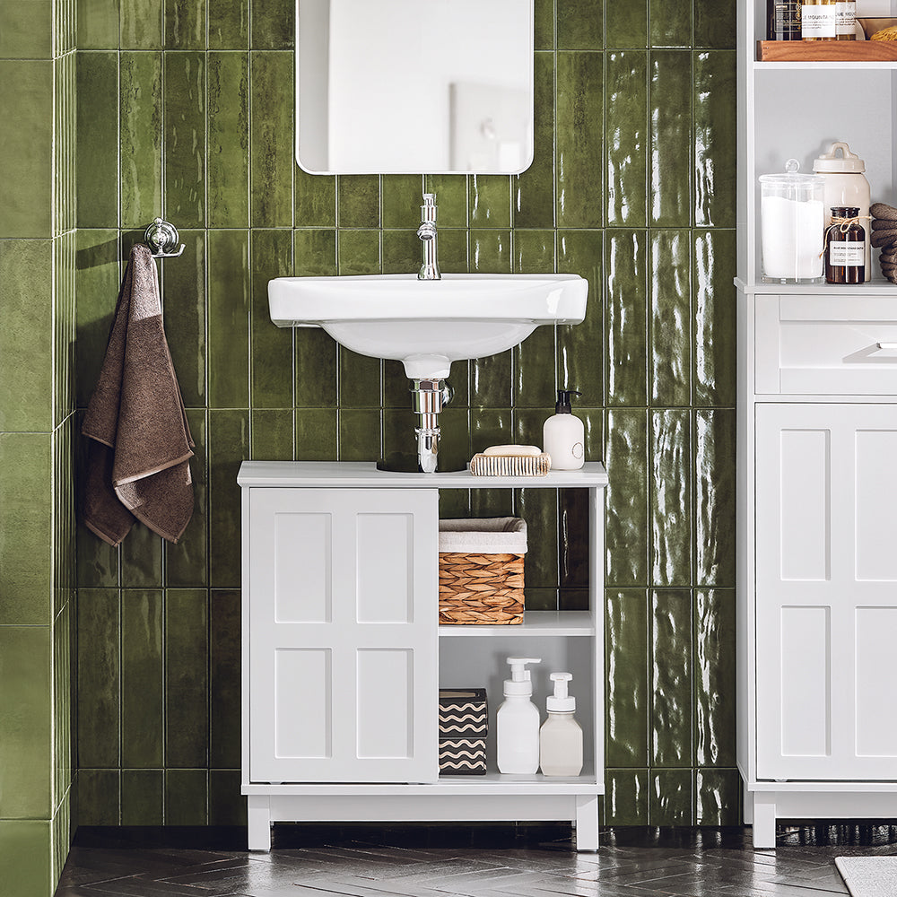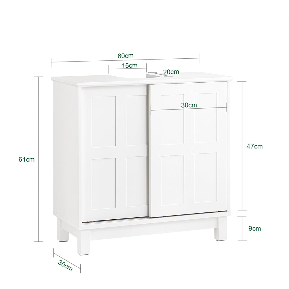 Ši pastatoma vonios spintelė po kriaukle 60x30x61 cm, baltos spalvos, suteiks jūsų vonios kambariui modernią ir elegantišką atmosferą. Dėl savo paprastos ir elegantiškos formos, ši spintelė puikiai derės prie įvairių interjero stilių.