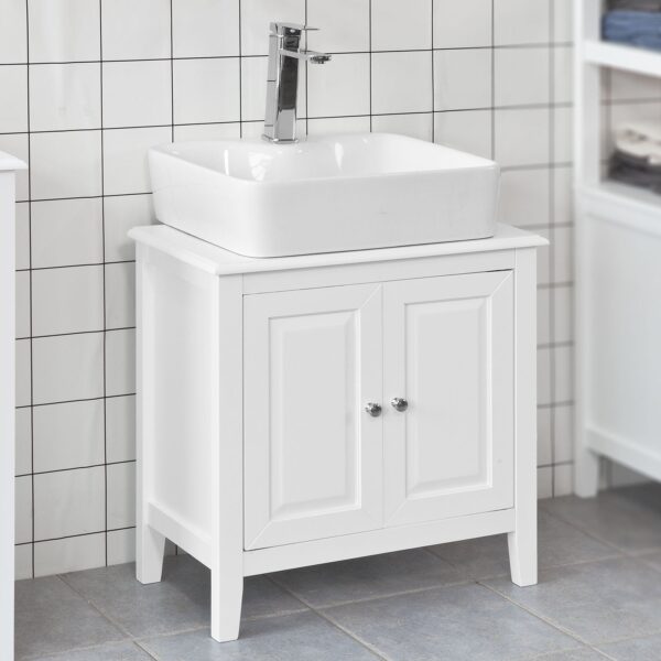 Ši pastatoma vonios spintelė po kriaukle yra puikus sprendimas jūsų vonios kambario organizavimui. Jos baltos ir sidabrinės spalvos dizainas suteikia modernumo ir elegancijos jūsų interjerui.