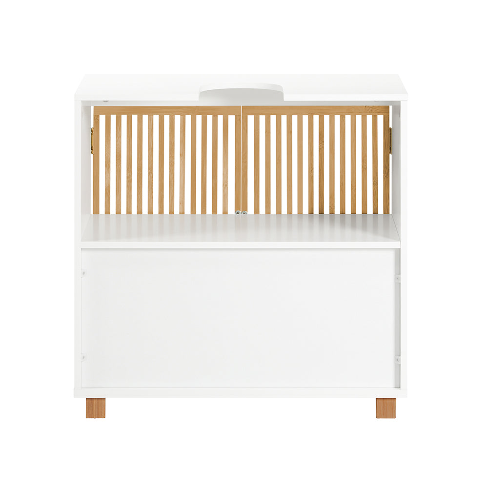 Ši pastatoma vonios spintelė po kriaukle 60x33x60 cm, baltos ir šviesiai rudos spalvos, yra puikus sprendimas jūsų vonios kambariui. Dėl aukštos kokybės gamybos, spintelė yra itin patvari ir ilgaamžė, net ir kasdien naudojant. Ji puikiai paslepia neestetiškus kriauklės vamzdžius, suteikdama jūsų vonios kambariui tvarkingą išvaizdą.