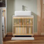 Vonios spintelė pasižymi elegantišku dizainu, o natūrali bambuko šiluma suteikia jaukumo ir stiliaus jūsų vonios kambariui. Spintelė turi erdvų skyrių, kuriame patogiai laikysite vonios reikmenis, valymo priemones, tualetinį popierių ir dar daugiau.