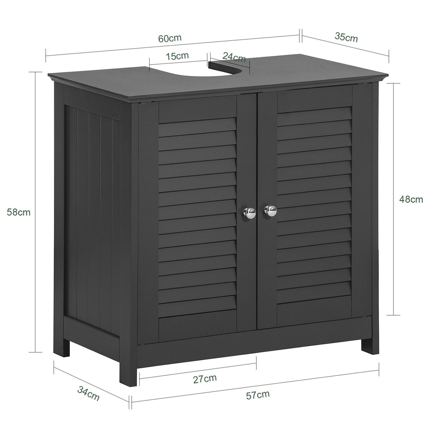 Ši pastatoma vonios spintelė po kriaukle 60x35x58 cm, juodos/sidabrinės spalvos, yra puikus pasirinkimas jūsų vonios kambariui. Skandinaviškas dizainas su švariomis ir paprastomis linijomis leidžia lengvai derinti spintelę su įvairių stilių baldais.