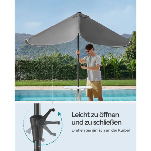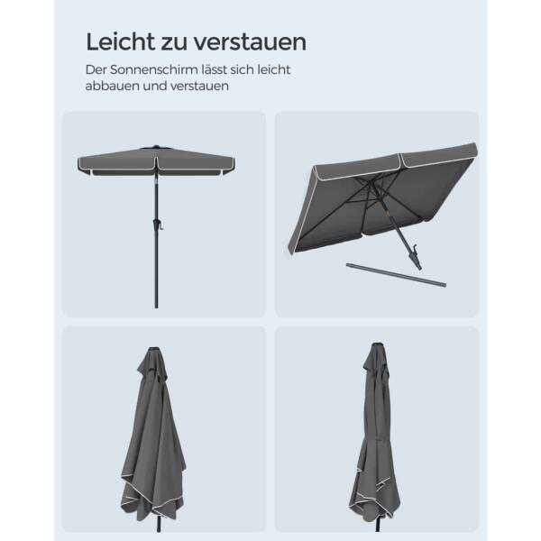 Šis pastatomas stačiakampis skėtis yra puikus pasirinkimas norint apsisaugoti nuo saulės ir lietaus. Skėtis yra pilkos spalvos, todėl lengvai derės prie įvairių aplinkos dizainų.